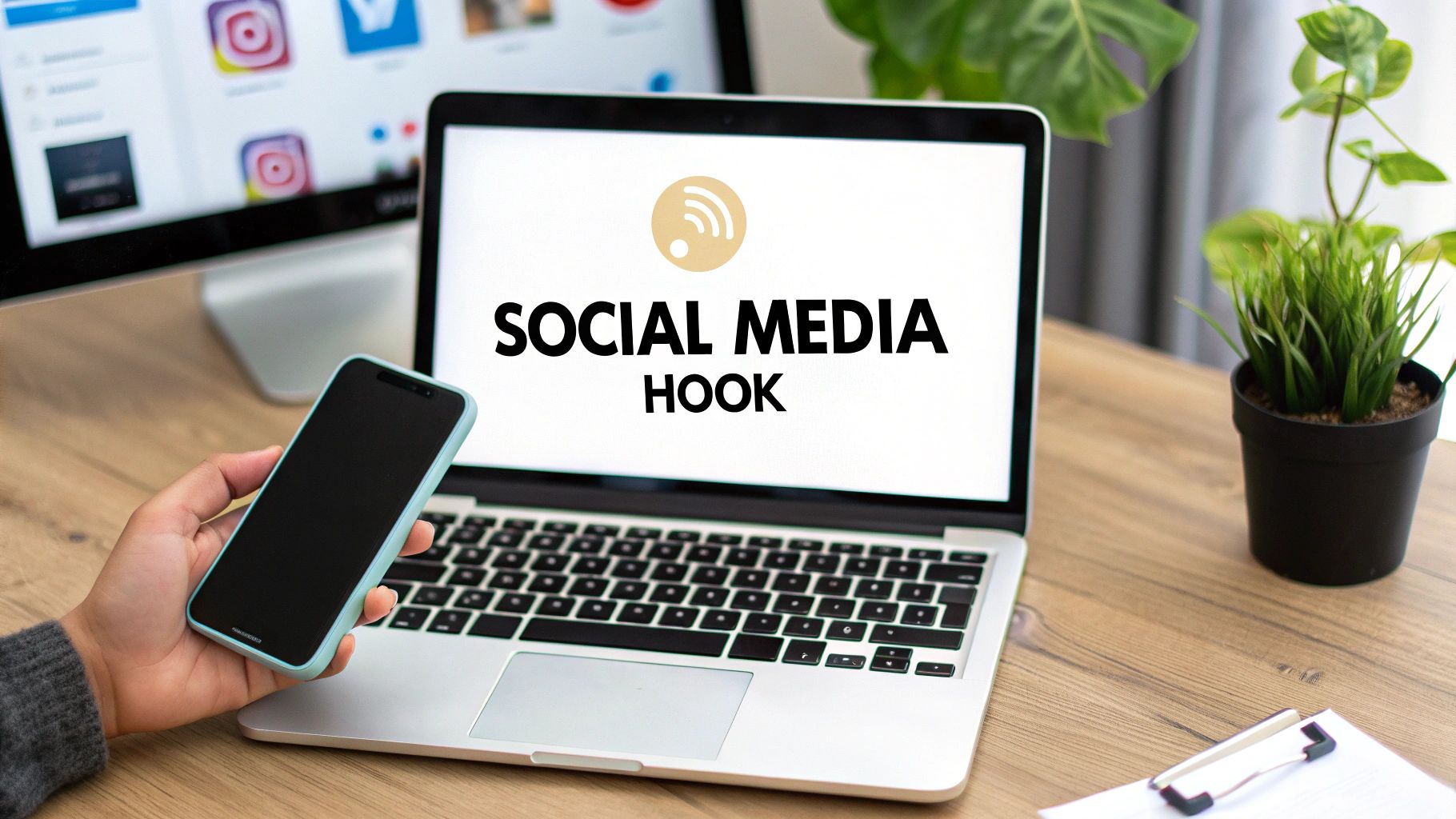Stop the scroll with a powerful social media hook. Learn proven frameworks, psychological triggers, and AI-driven examples to capture attention instantly.